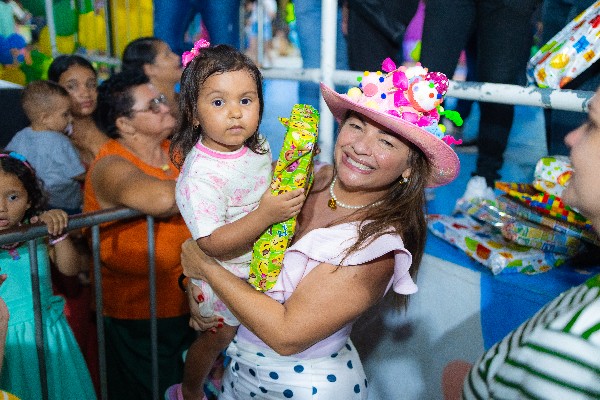 A prefeita Marlene Miranda marcou presença no evento, acompanhando de perto a animação das crianças e destacando a importância de proporcionar momentos de lazer e convivência comunitária.